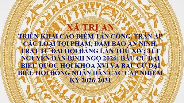 Nhằm bảo đảm tuyệt đối an toàn Đại hội đại biểu toàn quốc lần thứ XIV của Đảng, cuộc bầu cử đại biểu Quốc hội khóa XVI, đại biểu Hội đồng nhân dân các cấp nhiệm kỳ 2026–2031 và giữ vững an ninh trật tự trong dịp Tết Nguyên đán Bính Ngọ 2026, UBND xã Trị An đã ban hành văn bản về việc triển khai đợt cao điểm tấn công, trấn áp các loại tội phạm trên địa bàn. Đợt cao điểm được thực hiện từ ngày 12/12/2025 đến ngày 16/3/2026.