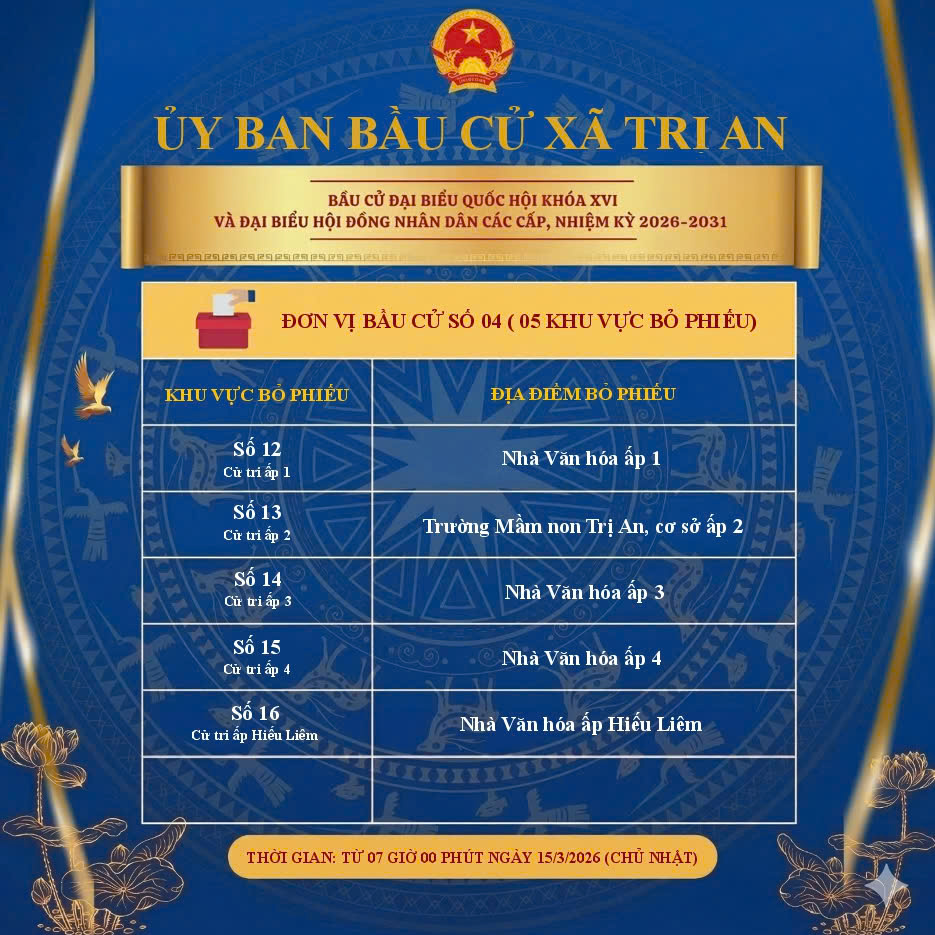 Đơn vị bầu cử số 04 thuộc Ủy ban bầu cử xã Trị An phục vụ Bầu cử đại biểu Quốc hội khóa XVI và đại biểu HĐND các cấp nhiệm kỳ 2026 – 2031
