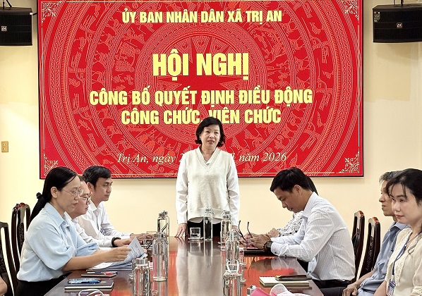 Tại hội nghị, đại diện Phòng Văn hóa – Xã hội đã công bố các quyết định điều động của UBND xã. Theo đó, ông Trần Văn Thắng – chuyên viên Văn phòng HĐND và UBND xã được điều động đến công tác tại Trung tâm Phục vụ hành chính công; ông Trần Văn Phong – chuyên viên Trung tâm Phục vụ hành chính công được điều động đến công tác tại Văn phòng HĐND và UBND xã; ông Đậu Đình Dũng – chuyên viên Trung tâm Phục vụ hành chính công được điều động đến công tác tại Phòng Kinh tế; bà Lý Thị Điểm – chuyên viên Trung tâm Phục vụ hành chính công được điều động đến công tác tại Phòng Văn hóa – Xã hội. Các quyết định trên có hiệu lực kể từ ngày 01/02/2026. Bên cạnh đó, bà Nguyễn Thị Hạnh – viên chức Trung tâm Dịch vụ tổng hợp được điều động đến công tác tại Trạm Y tế xã Trị An kể từ ngày 01/01/2026.
