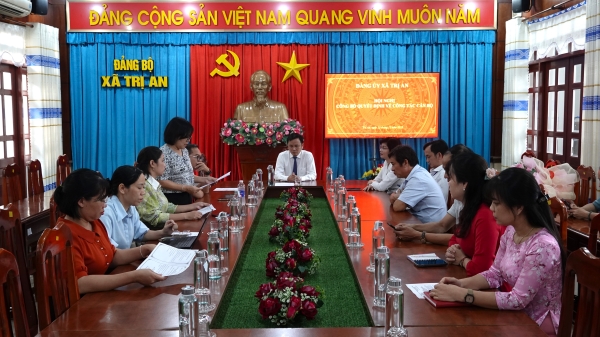 Tại hội nghị, Ban Thường vụ Đảng ủy xã đã công bố Quyết định bổ nhiệm đồng chí Ngô Thị Thúy, Chuyên viên Văn phòng Đảng ủy xã, giữ chức vụ Phó Chánh Văn phòng Đảng ủy xã. UBND xã cũng công bố Quyết định miễn nhiệm chức vụ Giám đốc Trung tâm Phục vụ Hành chính công xã Trị An đối với đồng chí Nguyễn Văn Mạnh – Phó Chủ tịch UBND xã; đồng thời giao đồng chí Nguyễn Thị Hồng Huệ – Phó Giám đốc Trung tâm Phục vụ Hành chính công, phụ trách Trung tâm Phục vụ Hành chính công xã.