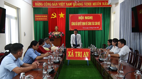 Chiều 12/8, Đảng ủy, HĐND xã Trị An tổ chức hội nghị công bố quyết định về công tác cán bộ. Tham dự có các đồng chí Đặng Huy Hiệu – Phó Bí thư Thường trực Đảng ủy xã; Lê Ngọc Hiếu – Phó Chủ tịch HĐND xã; Nguyễn Hải Bằng – Chủ tịch Ủy ban MTTQ Việt Nam xã.