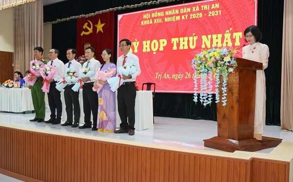 Sáng  ngày 26/3, Hội đồng nhân dân xã Trị An tổ chức kỳ họp thứ nhất khóa XIII, nhiệm kỳ 2026–2031 nhằm kiện toàn tổ chức bộ máy chính quyền địa phương sau bầu cử, bảo đảm hoạt động ổn định, hiệu quả trong nhiệm kỳ mới.