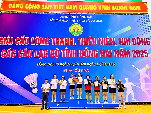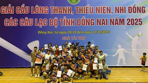 Chiều ngày 12/10/2025, tại Nhà thi đấu Trung tâm Huấn luyện và Thi đấu Thể thao tỉnh, Sở Văn hóa, Thể thao và Du lịch tỉnh Đồng Nai tổ chức bế mạc và trao thưởng Giải Cầu lông thanh, thiếu niên, nhi đồng các câu lạc bộ tỉnh Đồng Nai năm 2025. Giải đấu diễn ra từ ngày 09 đến 12/10/2025, quy tụ gần 600 vận động viên trẻ đến từ 65 câu lạc bộ trong toàn tỉnh.