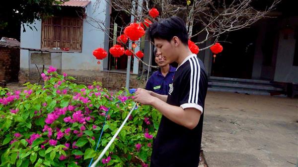 Hơn 10 năm nay, gia đình anh Nguyễn Hữu Hiệu đều đặn cùng người dân trong ấp tham gia dựng cây nêu. Anh Hiệu tỉ mẩn từ khâu chọn tre, dựng nêu cho đến treo những chiếc lồng đèn, gắn dây điện thắp sáng khi đêm xuống. Với anh, đó không chỉ là một công việc quen thuộc mỗi dịp xuân về, mà còn là niềm vui, là trách nhiệm gìn giữ nét đẹp truyền thống.