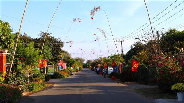 Khi hoàn tất, các cây nêu được dựng ngả nhẹ về phía lòng đường, tạo thành hình vòng cung mềm mại, nối tiếp dọc tuyến đường chính. Chiều xuống, ánh đèn từ những cây nêu đồng loạt thắp sáng, hòa cùng sắc đỏ cờ Tổ quốc, tạo nên một bức tranh xuân rực rỡ mà ấm áp giữa làng quê.