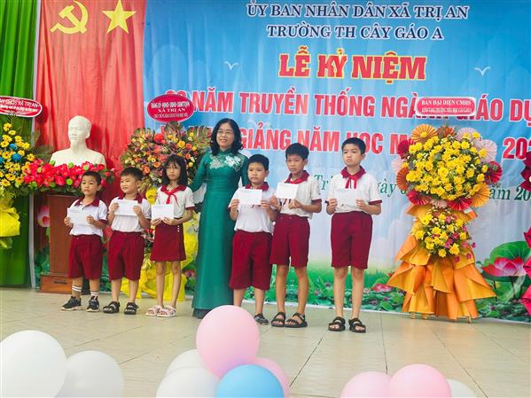 Dịp này, UBND xã Trị An trao 10 suất học bổng (mỗi suất trị giá 500.000 đồng) cho học sinh có hoàn cảnh khó khăn. Nhà trường cũng trao tặng 600 quyển vở do Thượng tọa Thích Thiện Thuận – Trụ trì Chùa Phổ Quang, phường Tân Triều vận động, hỗ trợ cho 60 học sinh. Ngoài ra, Ban đại diện Cha mẹ học sinh cùng các mạnh thường quân đã gửi nhiều phần quà ý nghĩa đến các em học sinh có hoàn cảnh khó khăn khác.
