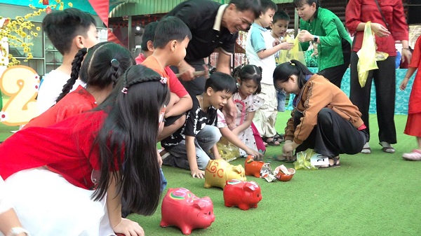 Nhân dịp này, đại diện học sinh các lớp đã cùng nhau tham gia hoạt động đập heo đất. Đây là kết quả của phong trào “Nuôi heo đất – Thực hành tiết kiệm” được nhà trường phát động từ đầu năm học. Toàn bộ số tiền tiết kiệm được sẽ dùng để trao tặng những phần quà ý nghĩa đến các bạn học sinh có hoàn cảnh khó khăn, tiếp thêm động lực để các em vươn lên trong học tập và cuộc sống.
