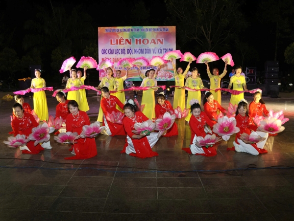 Tại liên hoan, các câu lạc bộ, đội, nhóm dân vũ thuộc chi hội phụ nữ các ấp đã tham gia biểu diễn sôi nổi, các tiết mục có nội dung ca ngợi Đảng, Bác Hồ, quê hương đất nước và mùa xuân. Các tiết mục được dàn dựng công phu, trang phục đẹp, phù hợp thuần phong mỹ tục, tạo không khí vui tươi, phấn khởi trong những ngày đầu xuân mới.