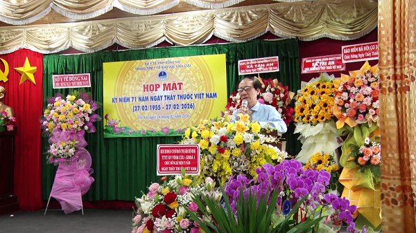 Phát biểu chúc mừng và tặng hoa tại buổi lễ, ông Lưu Văn Dũng – Phó Giám đốc Sở Y tế tỉnh Đồng Nai ghi nhận, biểu dương tinh thần trách nhiệm, sự tận tụy của tập thể cán bộ, y, bác sĩ, nhân viên Trung tâm Y tế khu vực Vĩnh Cửu trong công tác khám, chữa bệnh, đặc biệt là trong giai đoạn sắp xếp, sáp nhập vừa qua. Lãnh đạo Sở Y tế bày tỏ sự trân trọng và tôn vinh những đóng góp của đội ngũ thầy thuốc đối với sự nghiệp bảo vệ, chăm sóc và nâng cao sức khỏe Nhân dân, góp phần thực hiện thắng lợi các mục tiêu phát triển kinh tế – xã hội của địa phương.