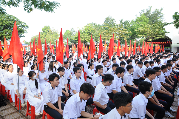 Sáng 05/9, hòa chung không khí rộn ràng của ngày hội “Toàn dân đưa trẻ đến trường”, Trường THPT Trị An long trọng tổ chức Lễ khai giảng năm học mới 2025 – 2026. Ngay từ sáng sớm, khuôn viên trường rực rỡ cờ hoa, tiếng nhạc tưng bừng chào đón hơn 1.300 học sinh cùng toàn thể cán bộ, giáo viên bước vào năm học mới với khí thế phấn khởi.