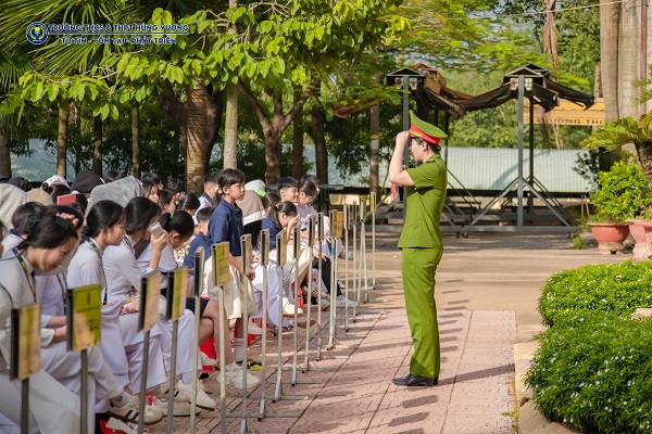 Tại chương trình, cán bộ Công an xã đã truyền đạt nhiều nội dung thiết thực, gần gũi với lứa tuổi học sinh như: nâng cao ý thức chấp hành Luật Giao thông đường bộ, đội mũ bảo hiểm đúng quy định; nhận biết và phòng tránh ma túy “núp bóng” sản phẩm quen thuộc; tác hại của thuốc lá điện tử, sử dụng mạng xã hội an toàn, cũng như rèn luyện kỹ năng ứng xử tích cực, nói không với bạo lực học đường.