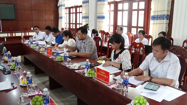 Cùng tham dự có, đồng chí Ngô Nguyễn Chí Tùng - Trưởng phòng Hành chính - Lưu trữ Văn phòng Tỉnh ủy; đồng chí Nguyễn Thị Thanh Thảo - Phó trưởng phòng Hành chính - Lưu trữ Văn phòng Tỉnh ủy. Tiếp và làm việc với Đoàn có các đồng chí Thường trực Đảng ủy, Lãnh đạo Văn phòng Đảng ủy và cán bộ làm công tác văn thư, lưu trữ của Đảng ủy các xã, phường.