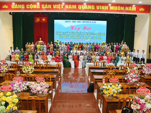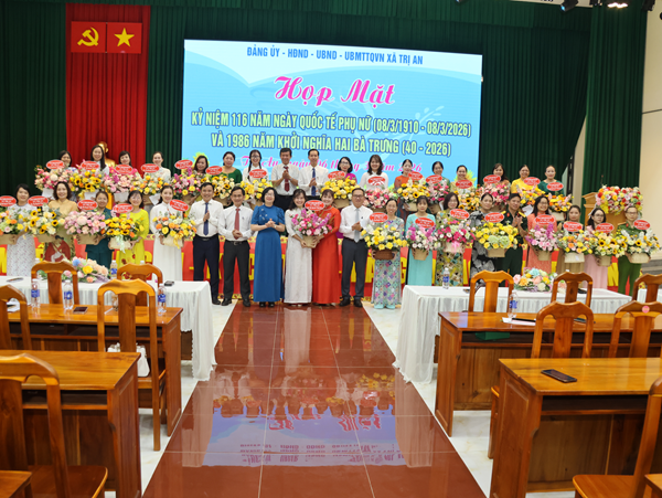 Chiều ngày 06/3/2026, tại Hội trường Trung tâm Dịch vụ Tổng hợp xã Trị An, Đảng ủy – HĐND – UBND – Ủy ban MTTQ Việt Nam xã Trị An đã tổ chức buổi họp mặt kỷ niệm 116 năm Ngày Quốc tế Phụ nữ (8/3/1910 – 8/3/2026) và 1986 năm Khởi nghĩa Hai Bà Trưng.
