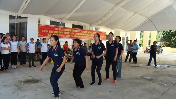 Sau lễ ra quân, cán bộ, công chức, viên chức xã tham gia giao lưu thể thao chào mừng Ngày Phụ nữ Việt Nam 20/10, tạo không khí vui tươi, phấn khởi, tăng cường tinh thần đoàn kết trong toàn thể đội ngũ.